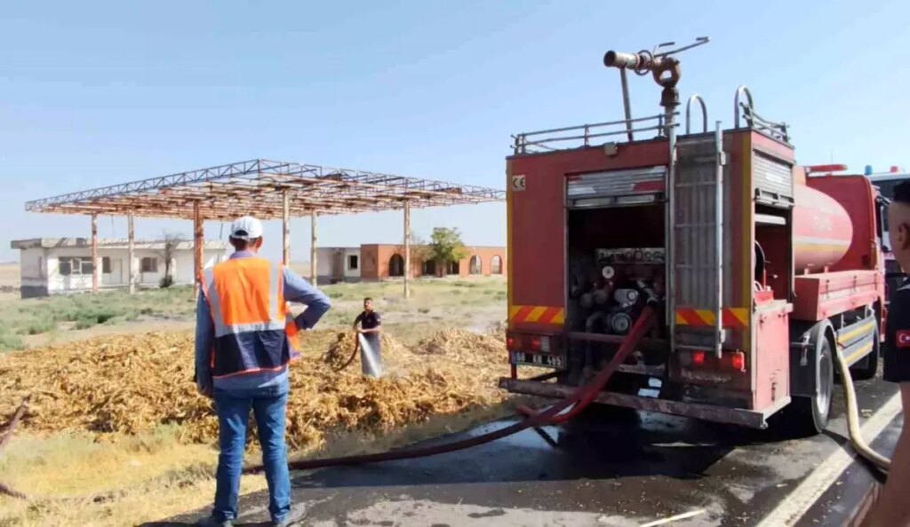 Yangın, Aksaray- Konya kara yolu Yapılcan köyü yakınlarında yaşandı. Edinilen bilgiye nazaran, Aksaray’dan Konya istikametine seyreden R.Ö. (56) yönetimindeki 50 ADY 348 plakalı saman yüklü tırın dorsesindeki samanlar, bilinmeyen bir nedenle alev aldı. Yangını fark eden öbür şoförler tır sürücüsünü uyardı. İkazlar üzerine tırı sağa çeken şoför dorseye çıkarak yanan saman balyalarını yol kenarına attı. Şoförlerin uyarması ve şoförün anında müdahalesiyle tır yanmaktan kurtulurken, itfaiye takımları tarafından yanan saman balyaları söndürüldü. – AKSARAY