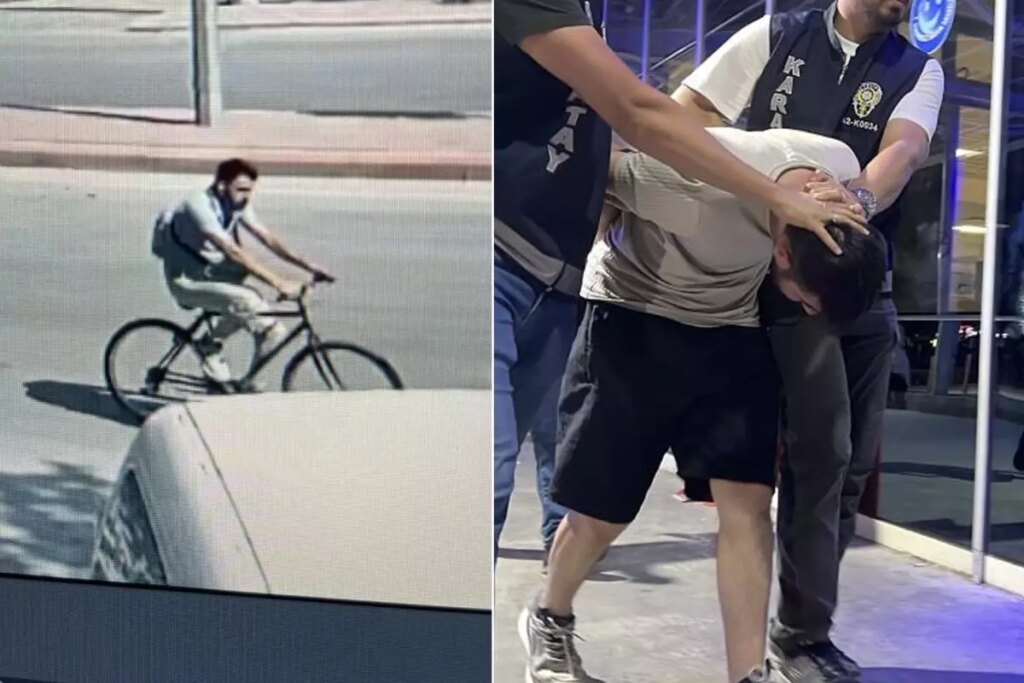 Mağdur bayan ile görüşme yapan polis takımları, toplanan bilgiler sonrası şahsı yakalamak için geniş çaplı çalışma başlattı. Grupların, bölgede 96 farklı noktadan güvenlik kamerası imgelerini incelemesi sonrası, bisikletli şahsın 3 farklı kabahat kaydı bulunan 27 yaşındaki 2 çocuk babası İ.S. olduğu tespit edildi. Polis takımlarınca belirlenen adrese yapılan baskında kuşkulu kahvaltı yaptığı sırada yakalanarak gözaltına alındı.