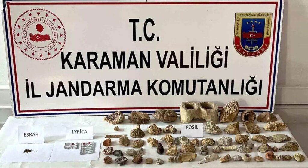 Karaman’da jandarma takımları tarafından yapılan asayiş, narkotik ve trafik uygulamalarında çeşitli cürümlerden aranması olan 4 kişi tutuklanırken, uyuşturucu ve 63 adet fosil ele geçirildi.