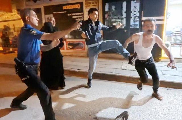 KAVGAYI AYIRMAYA ÇALIŞAN POLİSLERE BIÇAK ÇEKİP SALDIRDILAR